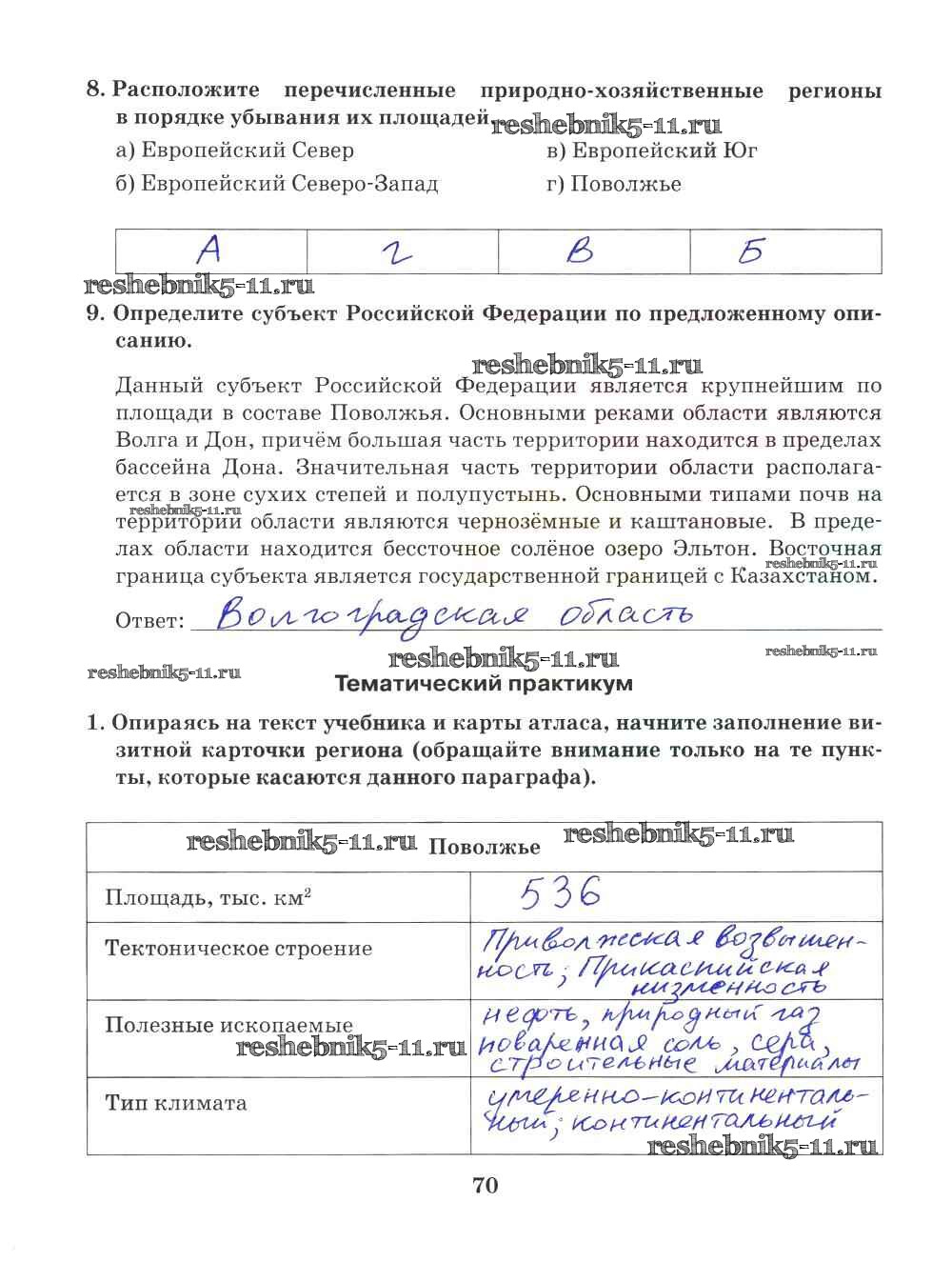 Готовая домашняя работа с ответами по Географии за 9 класс Домогацких Рабочая тетрадь Инновационная школа Русское слово 2018 ФГОС - Часть 2. Страницы 70