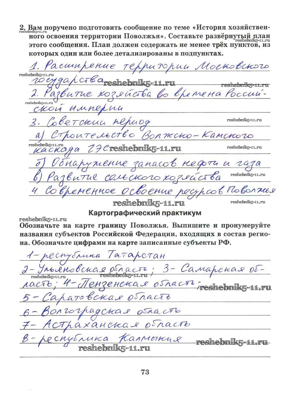 Готовая домашняя работа с ответами по Географии за 9 класс Домогацких Рабочая тетрадь Инновационная школа Русское слово 2018 ФГОС - Часть 2. Страницы 73