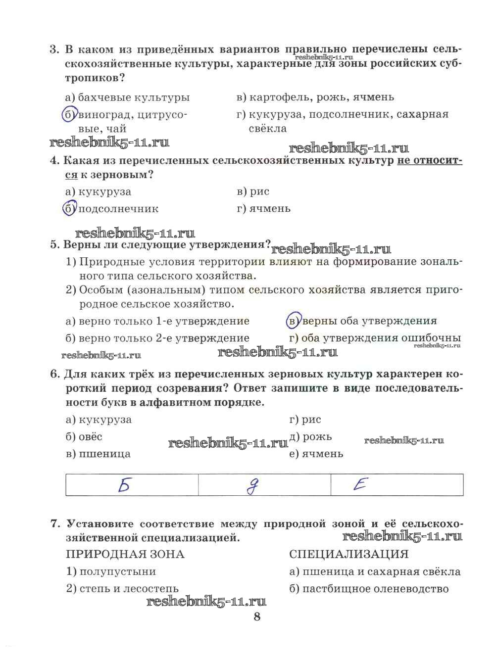 Готовая домашняя работа с ответами по Географии за 9 класс Домогацких Рабочая тетрадь Инновационная школа Русское слово 2018 ФГОС - Часть 2. Страницы 8