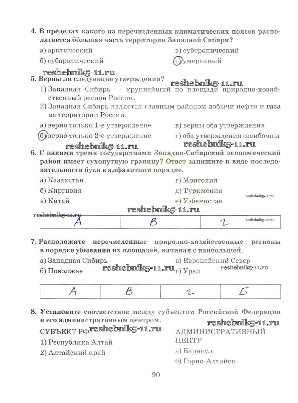 Готовая домашняя работа с ответами по Географии за 9 класс Домогацких Рабочая тетрадь Инновационная школа Русское слово 2018 ФГОС - Часть 2. Страницы 90