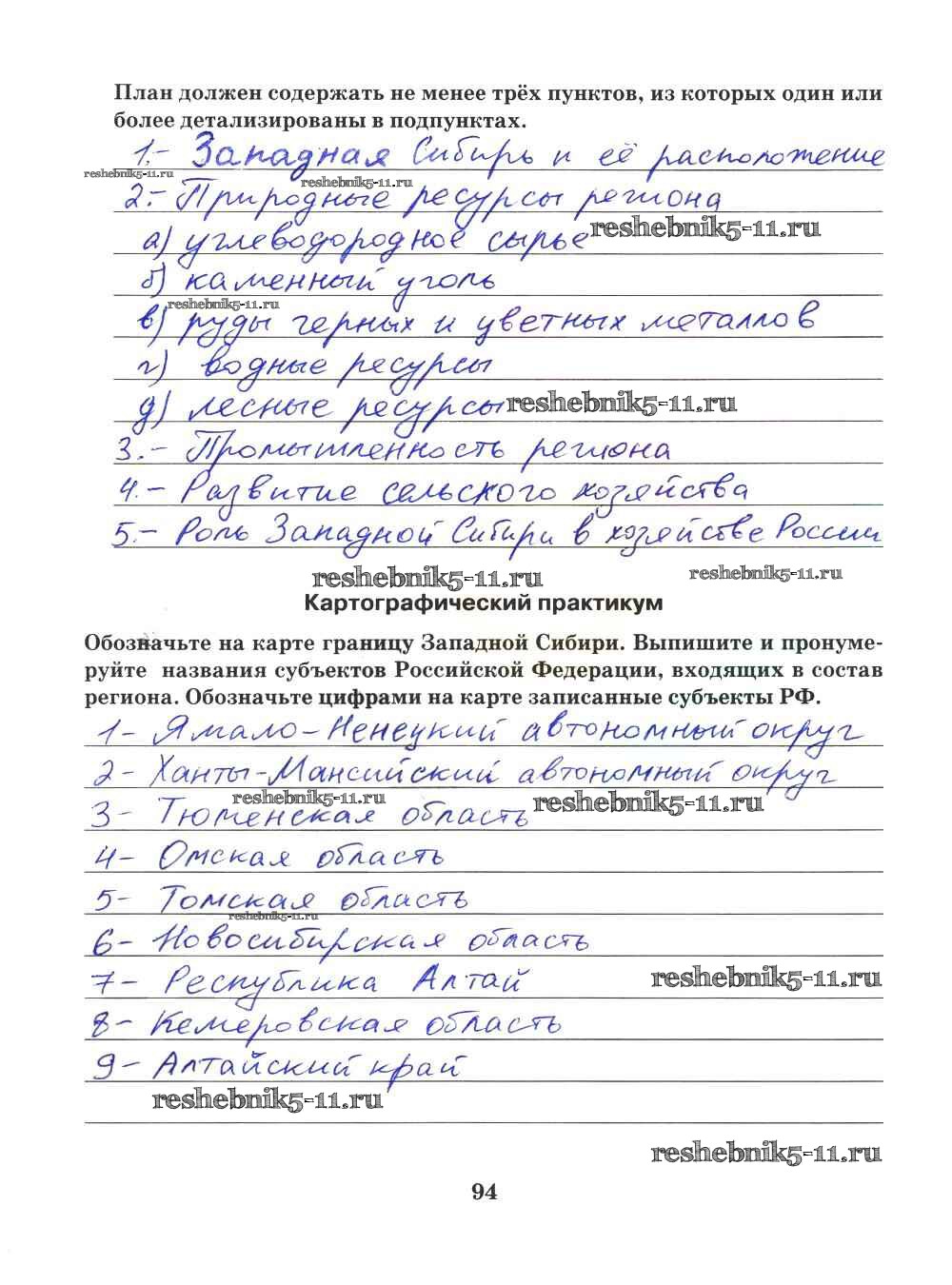Готовая домашняя работа с ответами по Географии за 9 класс Домогацких Рабочая тетрадь Инновационная школа Русское слово 2018 ФГОС - Часть 2. Страницы 94