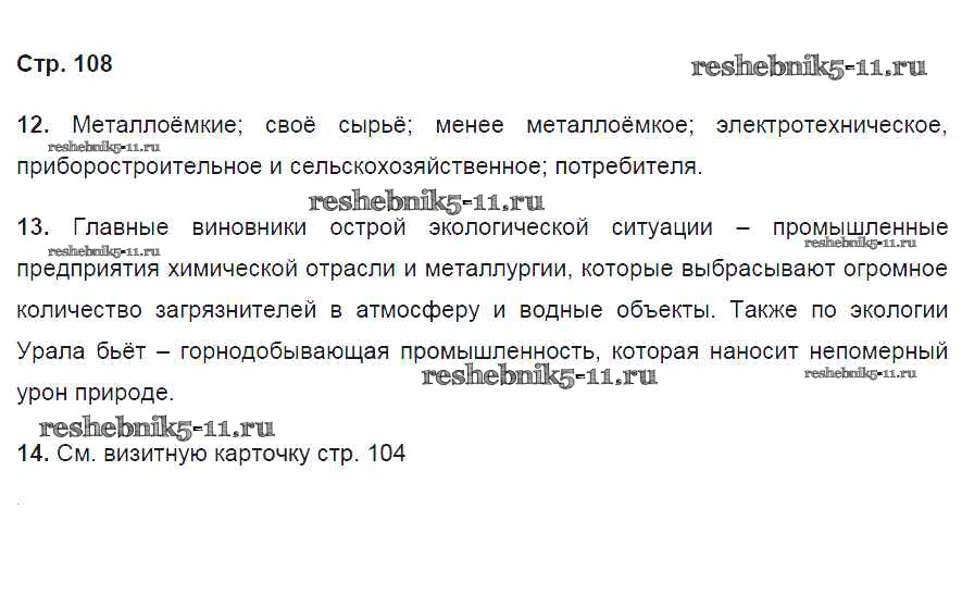 Готовая домашняя работа с ответами по Географии за 9 класс Дронов Рабочая тетрадь Вертикаль Дрофа 2020 ФГОС - Страницы 108