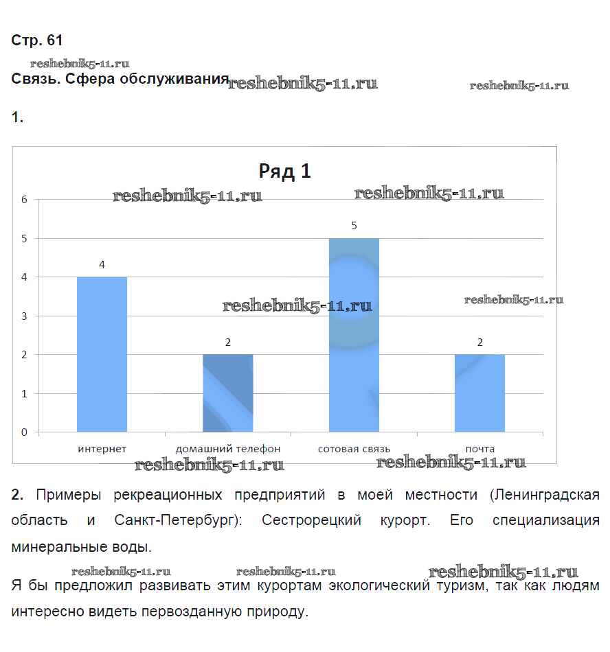 Готовая домашняя работа с ответами по Географии за 9 класс Дронов Рабочая тетрадь Вертикаль Дрофа 2020 ФГОС - Страницы 61