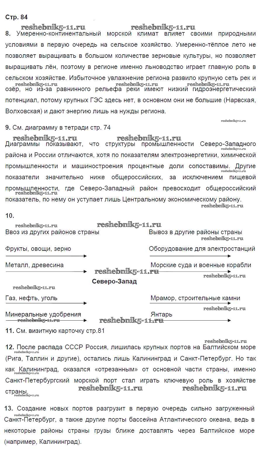 Готовая домашняя работа с ответами по Географии за 9 класс Дронов Рабочая тетрадь Вертикаль Дрофа 2020 ФГОС - Страницы 84