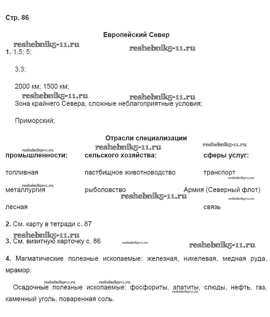 Готовая домашняя работа с ответами по Географии за 9 класс Дронов Рабочая тетрадь Вертикаль Дрофа 2020 ФГОС - Страницы 86