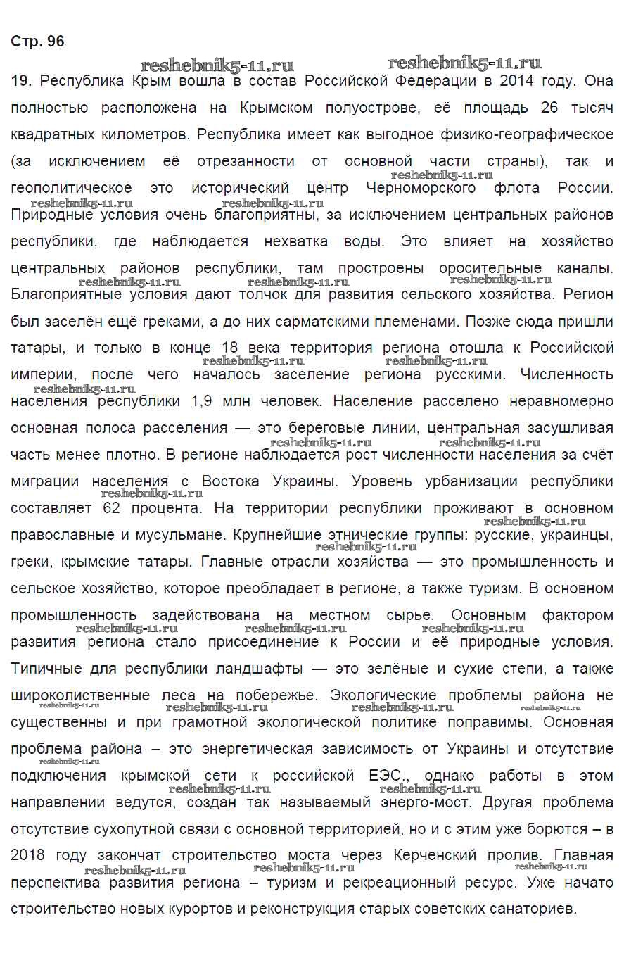 Готовая домашняя работа с ответами по Географии за 9 класс Дронов Рабочая тетрадь Вертикаль Дрофа 2020 ФГОС - Страницы 96