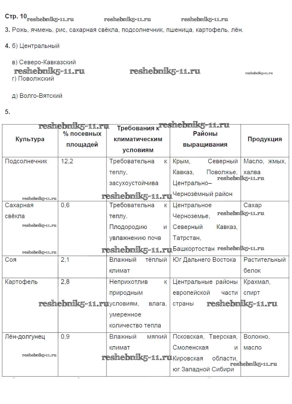 Готовая домашняя работа с ответами по Географии за 9 класс Ким, Марченко, Низовцев Рабочая тетрадь Вертикаль Дрофа 2017 ФГОС - Страницы тетради 10