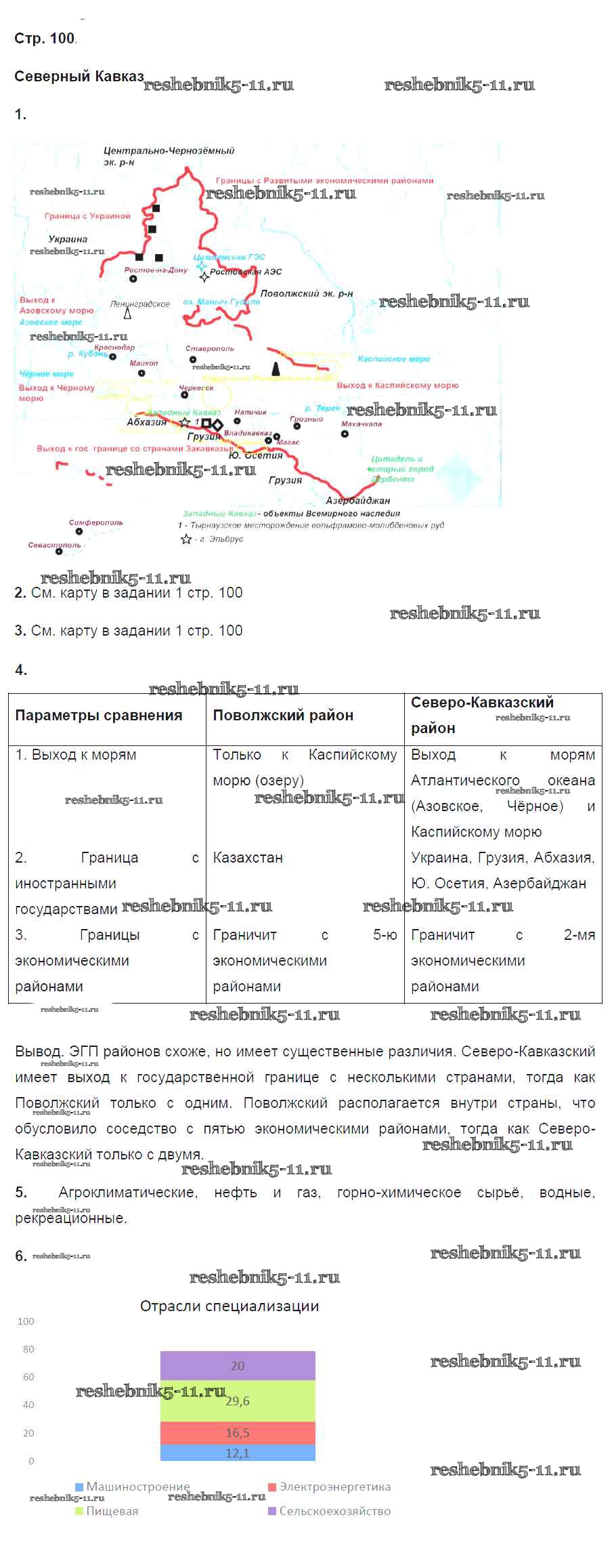 Готовая домашняя работа с ответами по Географии за 9 класс Ким, Марченко, Низовцев Рабочая тетрадь Вертикаль Дрофа 2017 ФГОС - Страницы тетради 100