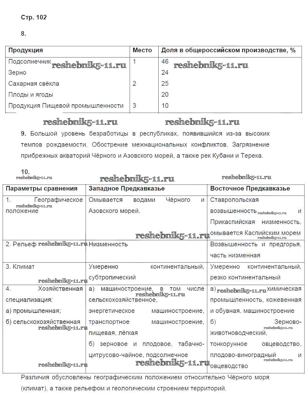 Готовая домашняя работа с ответами по Географии за 9 класс Ким, Марченко, Низовцев Рабочая тетрадь Вертикаль Дрофа 2017 ФГОС - Страницы тетради 102