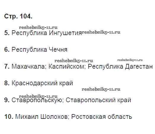 Готовая домашняя работа с ответами по Географии за 9 класс Ким, Марченко, Низовцев Рабочая тетрадь Вертикаль Дрофа 2017 ФГОС - Страницы тетради 104