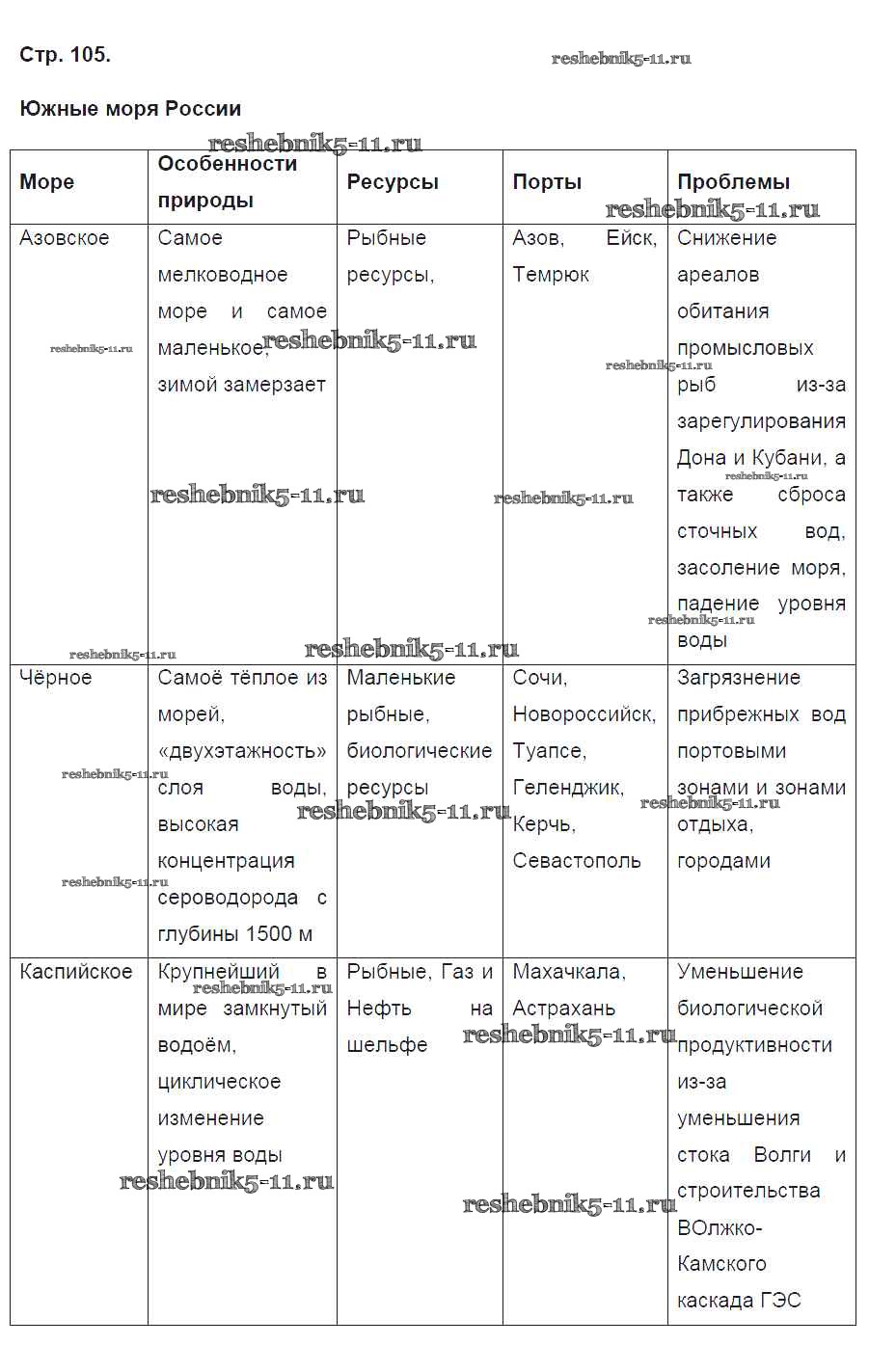Готовая домашняя работа с ответами по Географии за 9 класс Ким, Марченко, Низовцев Рабочая тетрадь Вертикаль Дрофа 2017 ФГОС - Страницы тетради 105