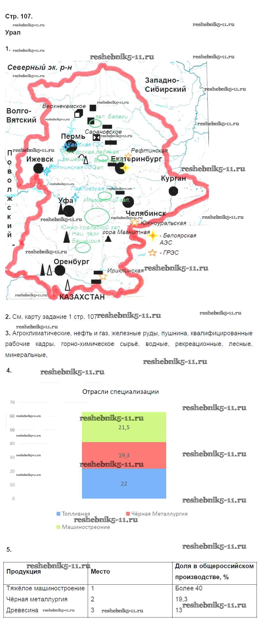 Готовая домашняя работа с ответами по Географии за 9 класс Ким, Марченко, Низовцев Рабочая тетрадь Вертикаль Дрофа 2017 ФГОС - Страницы тетради 107