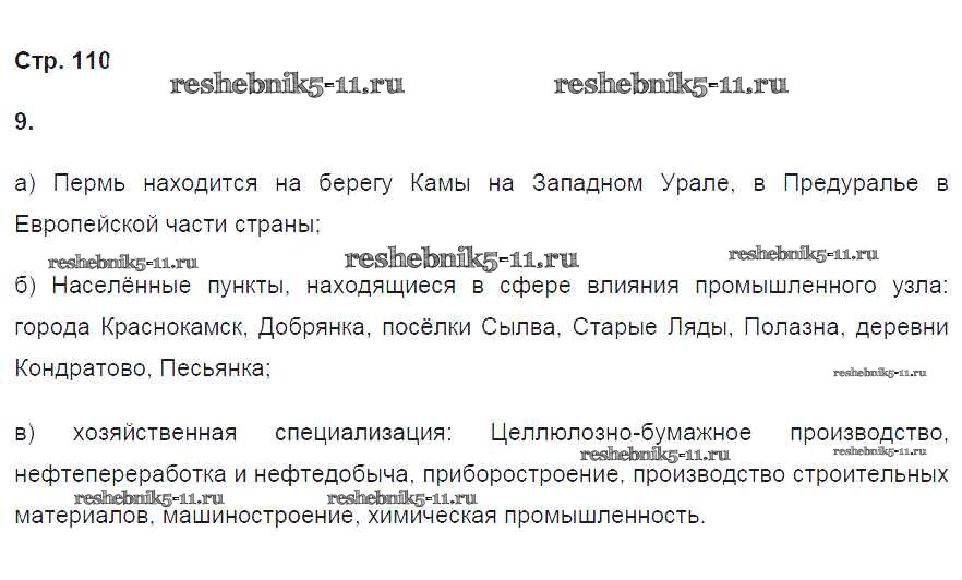 Готовая домашняя работа с ответами по Географии за 9 класс Ким, Марченко, Низовцев Рабочая тетрадь Вертикаль Дрофа 2017 ФГОС - Страницы тетради 110