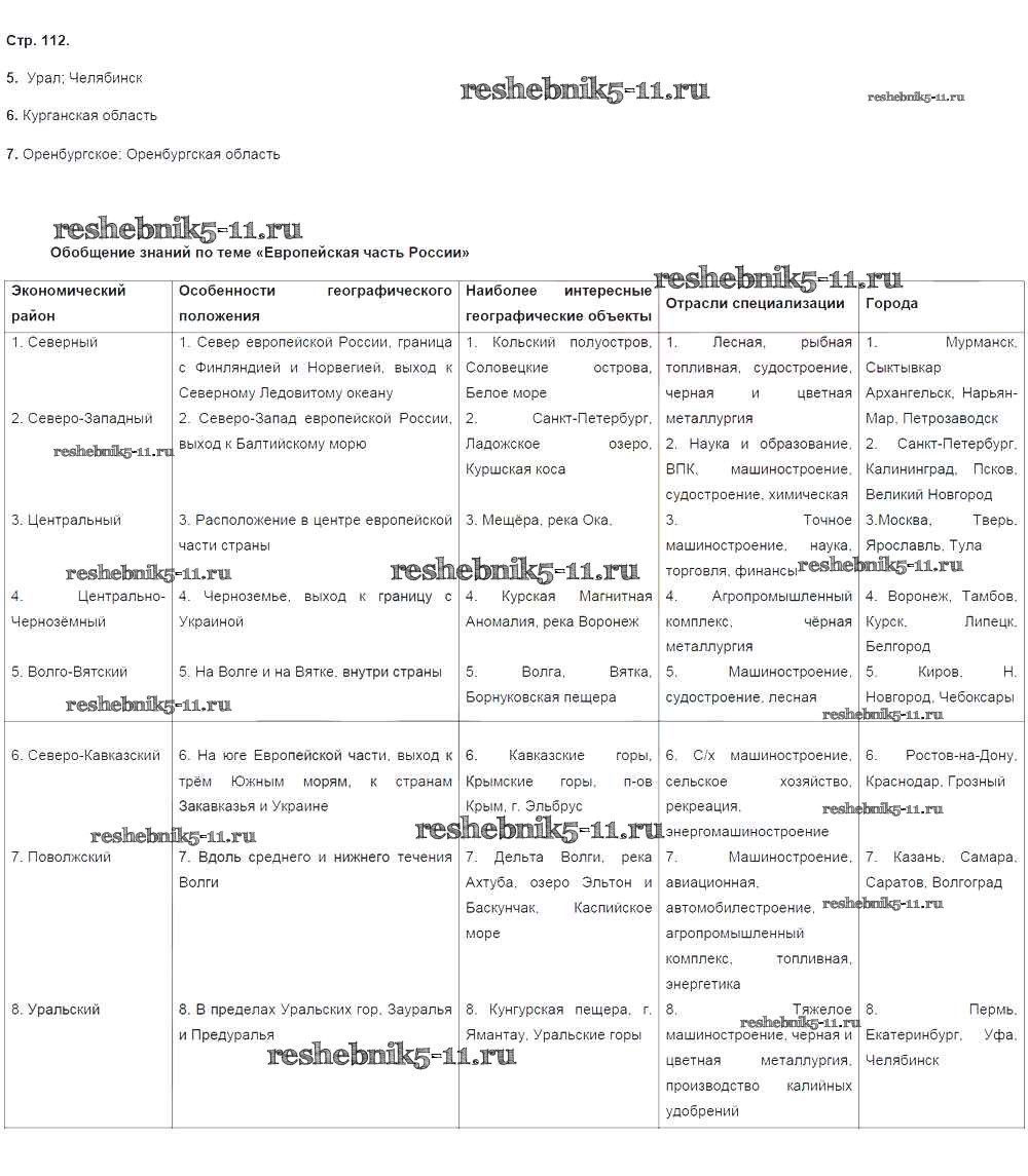 Готовая домашняя работа с ответами по Географии за 9 класс Ким, Марченко, Низовцев Рабочая тетрадь Вертикаль Дрофа 2017 ФГОС - Страницы тетради 112