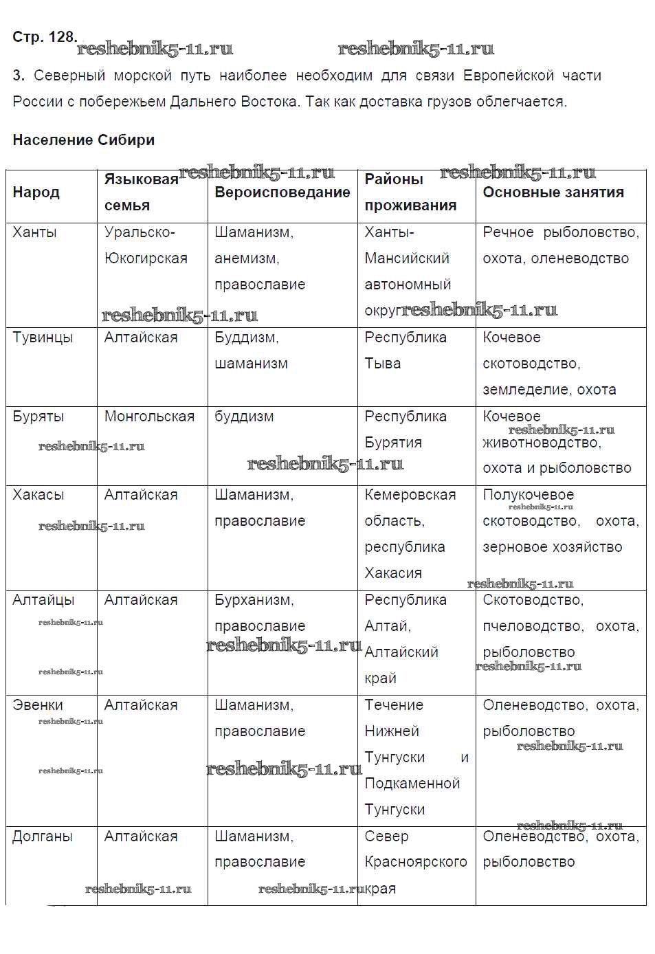 Готовая домашняя работа с ответами по Географии за 9 класс Ким, Марченко, Низовцев Рабочая тетрадь Вертикаль Дрофа 2017 ФГОС - Страницы тетради 128