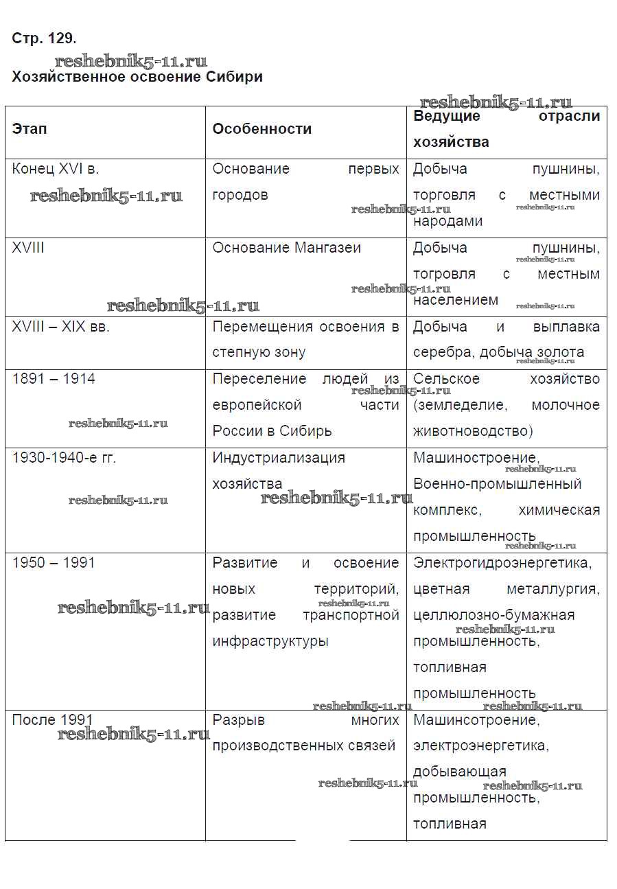Готовая домашняя работа с ответами по Географии за 9 класс Ким, Марченко, Низовцев Рабочая тетрадь Вертикаль Дрофа 2017 ФГОС - Страницы тетради 129