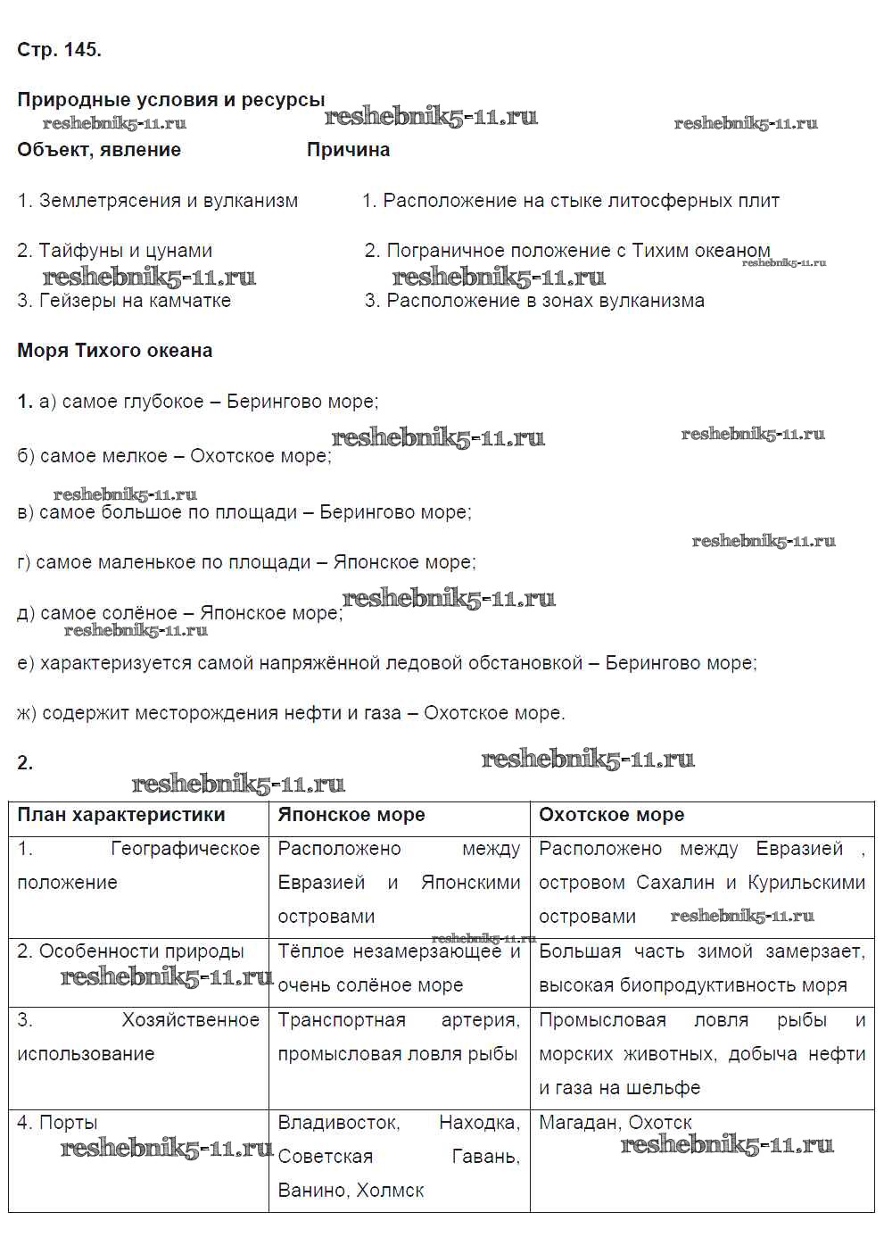 Готовая домашняя работа с ответами по Географии за 9 класс Ким, Марченко, Низовцев Рабочая тетрадь Вертикаль Дрофа 2017 ФГОС - Страницы тетради 145