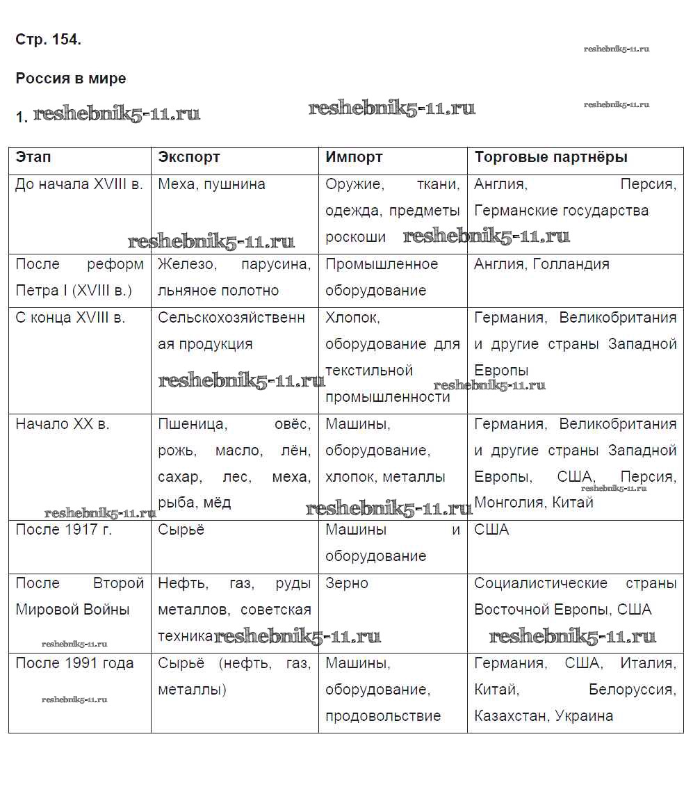 Готовая домашняя работа с ответами по Географии за 9 класс Ким, Марченко, Низовцев Рабочая тетрадь Вертикаль Дрофа 2017 ФГОС - Страницы тетради 154
