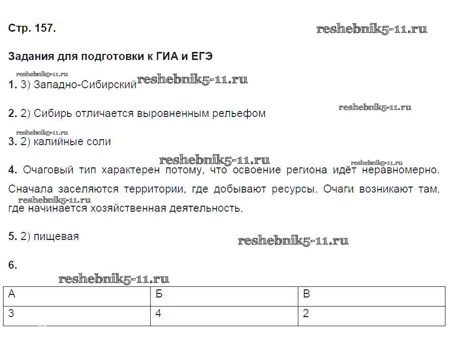 Готовая домашняя работа с ответами по Географии за 9 класс Ким, Марченко, Низовцев Рабочая тетрадь Вертикаль Дрофа 2017 ФГОС - Страницы тетради 157