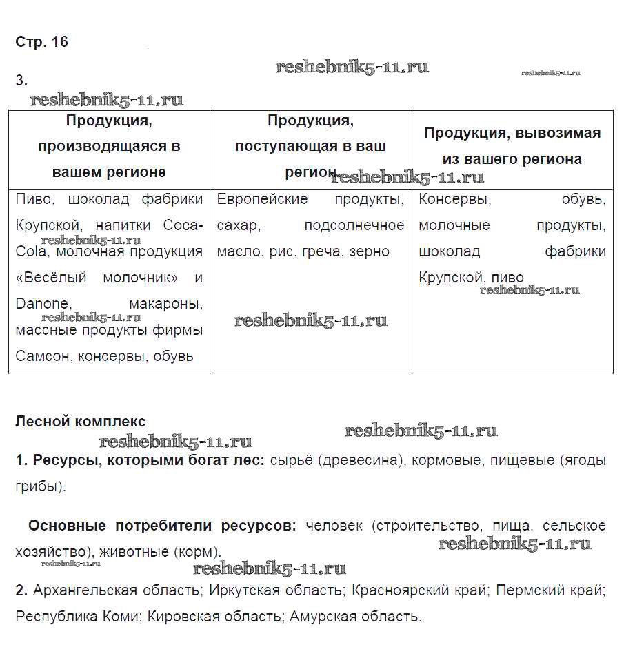 Готовая домашняя работа с ответами по Географии за 9 класс Ким, Марченко, Низовцев Рабочая тетрадь Вертикаль Дрофа 2017 ФГОС - Страницы тетради 16