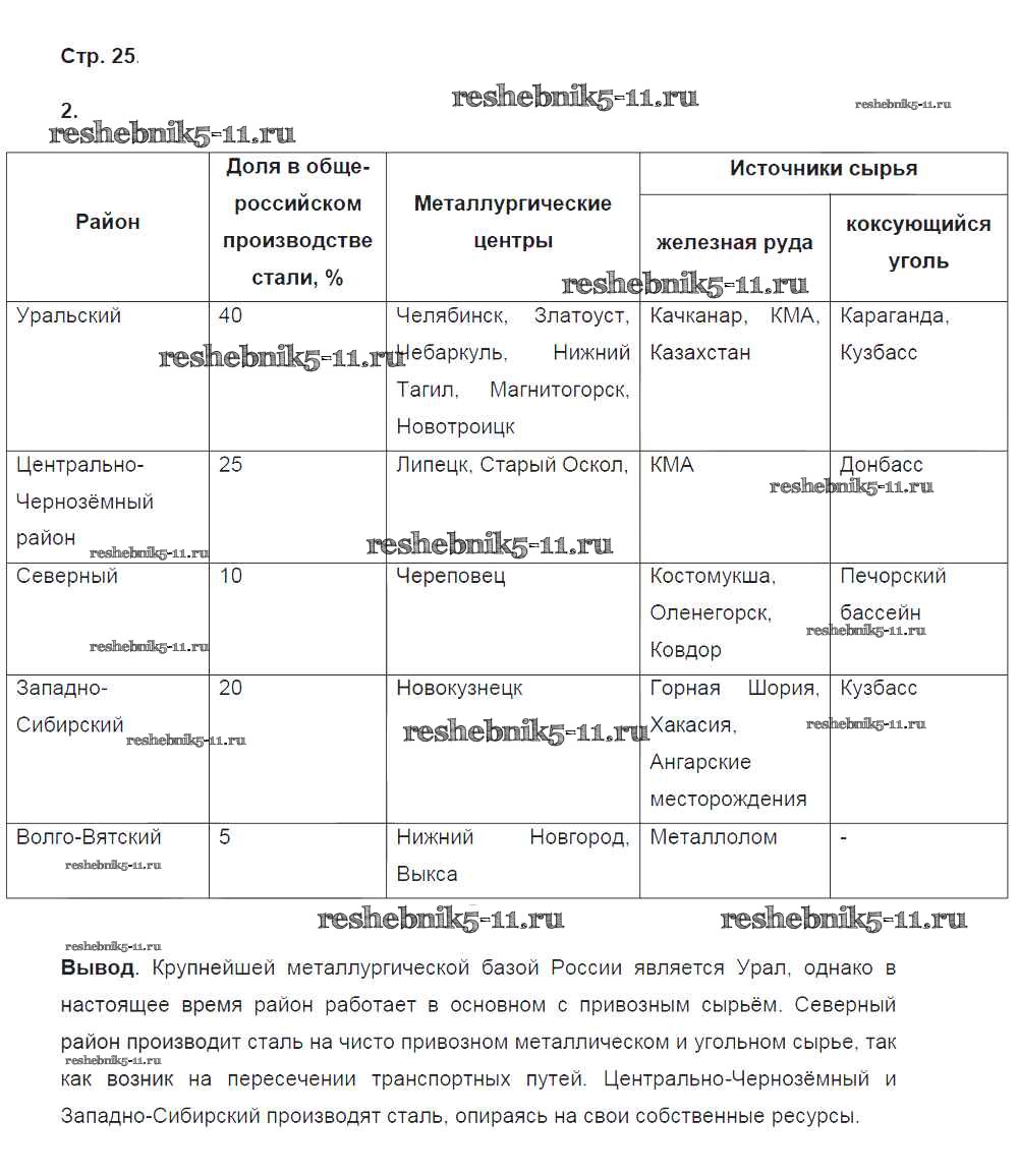 Готовая домашняя работа с ответами по Географии за 9 класс Ким, Марченко, Низовцев Рабочая тетрадь Вертикаль Дрофа 2017 ФГОС - Страницы тетради 25