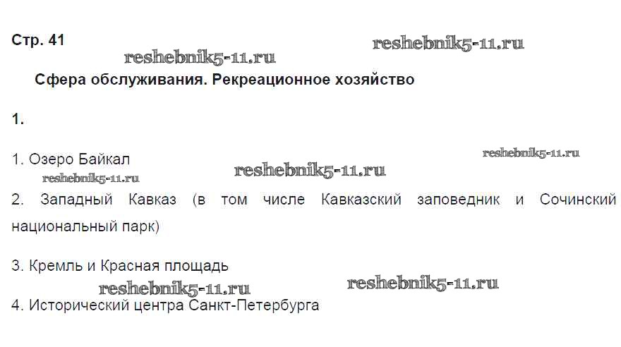Готовая домашняя работа с ответами по Географии за 9 класс Ким, Марченко, Низовцев Рабочая тетрадь Вертикаль Дрофа 2017 ФГОС - Страницы тетради 41