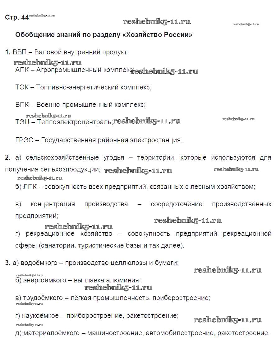 Готовая домашняя работа с ответами по Географии за 9 класс Ким, Марченко, Низовцев Рабочая тетрадь Вертикаль Дрофа 2017 ФГОС - Страницы тетради 44
