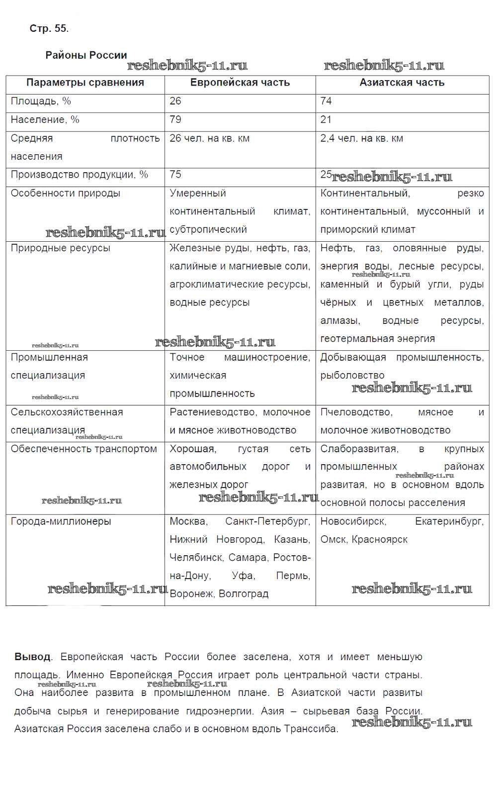 Готовая домашняя работа с ответами по Географии за 9 класс Ким, Марченко, Низовцев Рабочая тетрадь Вертикаль Дрофа 2017 ФГОС - Страницы тетради 55