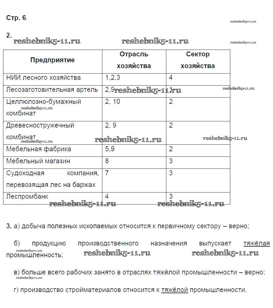 Готовая домашняя работа с ответами по Географии за 9 класс Ким, Марченко, Низовцев Рабочая тетрадь Вертикаль Дрофа 2017 ФГОС - Страницы тетради 6