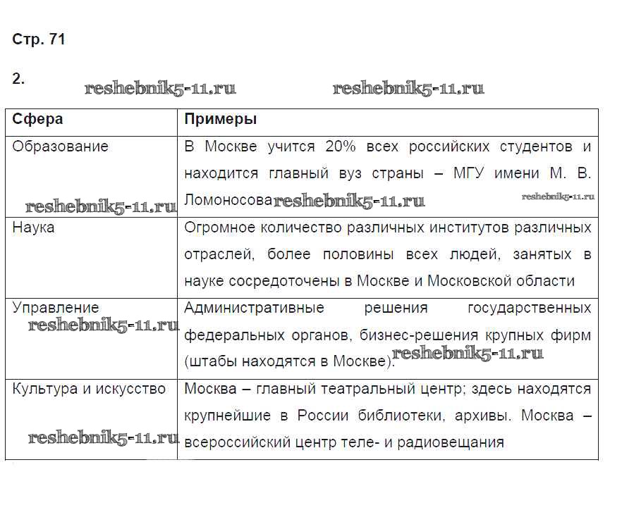 Готовая домашняя работа с ответами по Географии за 9 класс Ким, Марченко, Низовцев Рабочая тетрадь Вертикаль Дрофа 2017 ФГОС - Страницы тетради 71