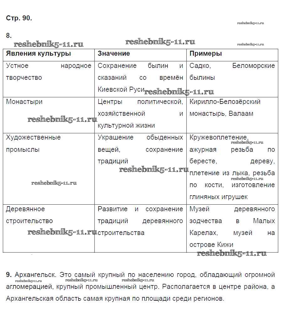 Готовая домашняя работа с ответами по Географии за 9 класс Ким, Марченко, Низовцев Рабочая тетрадь Вертикаль Дрофа 2017 ФГОС - Страницы тетради 90