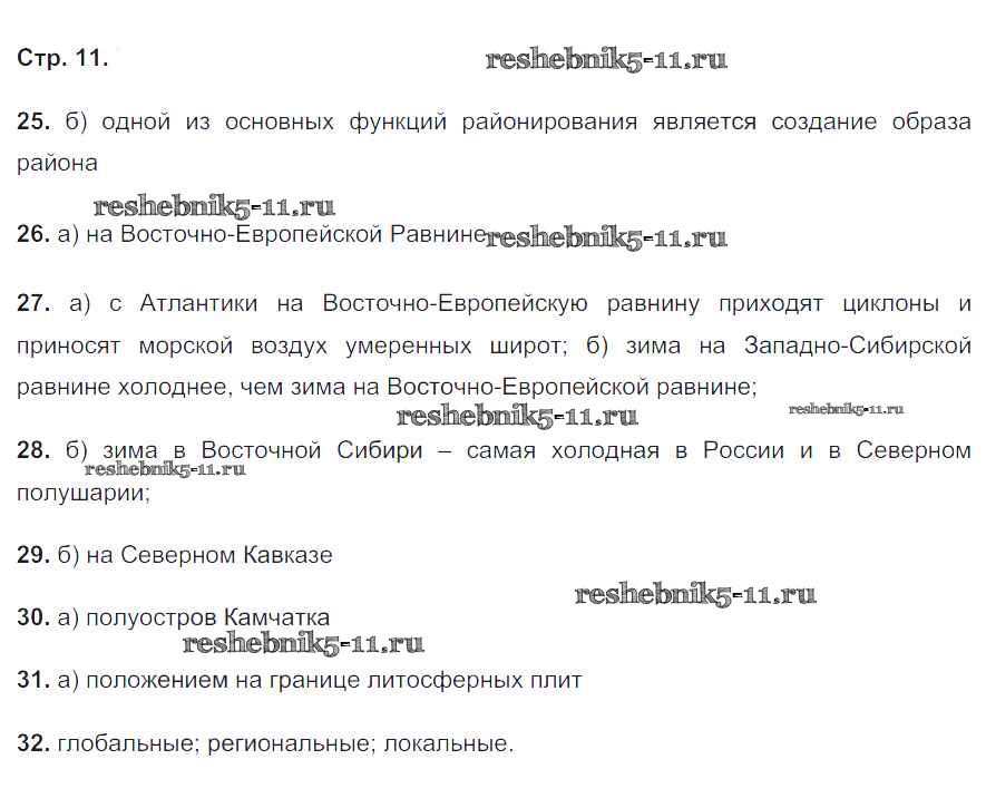 Готовая домашняя работа с ответами по Географии за 9 класс Николина Тетрадь-тренажер Полярная звезда Просвещение 2016 ФГОС - Страницы тетради 11