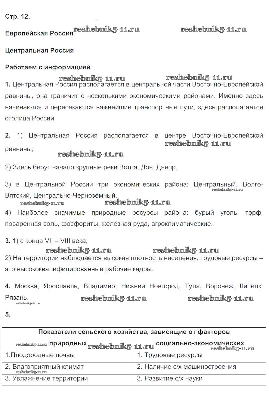 Готовая домашняя работа с ответами по Географии за 9 класс Николина Тетрадь-тренажер Полярная звезда Просвещение 2016 ФГОС - Страницы тетради 12