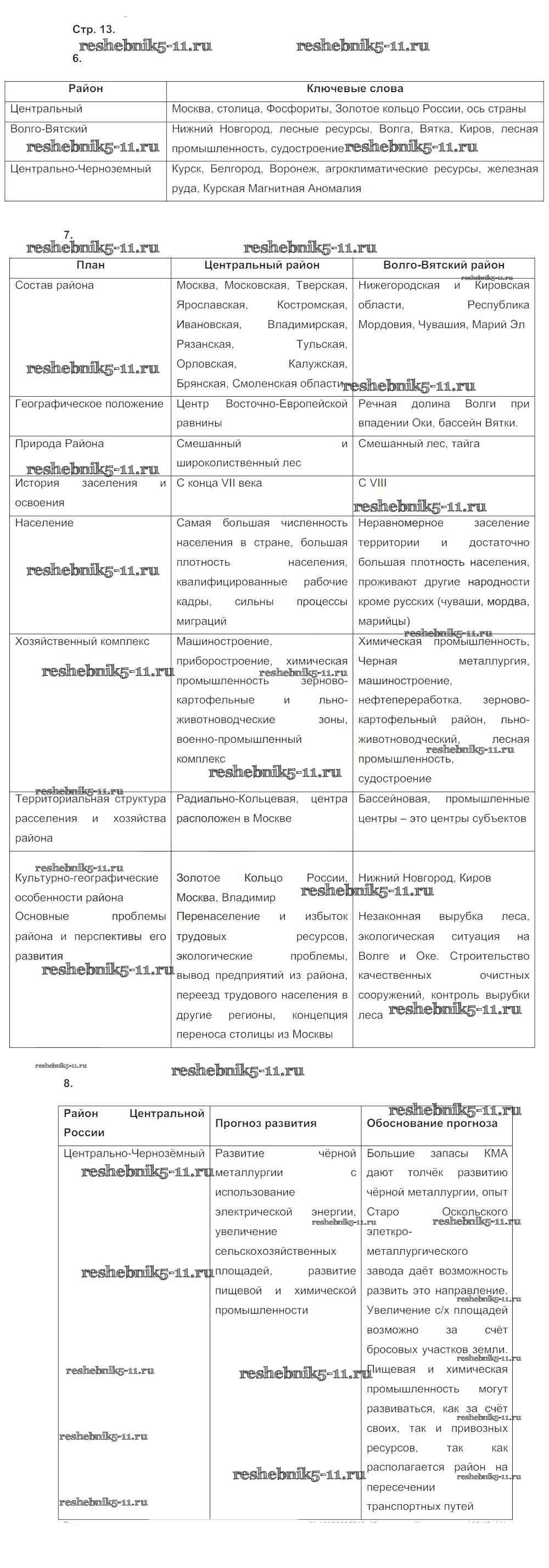 Готовая домашняя работа с ответами по Географии за 9 класс Николина Тетрадь-тренажер Полярная звезда Просвещение 2016 ФГОС - Страницы тетради 13