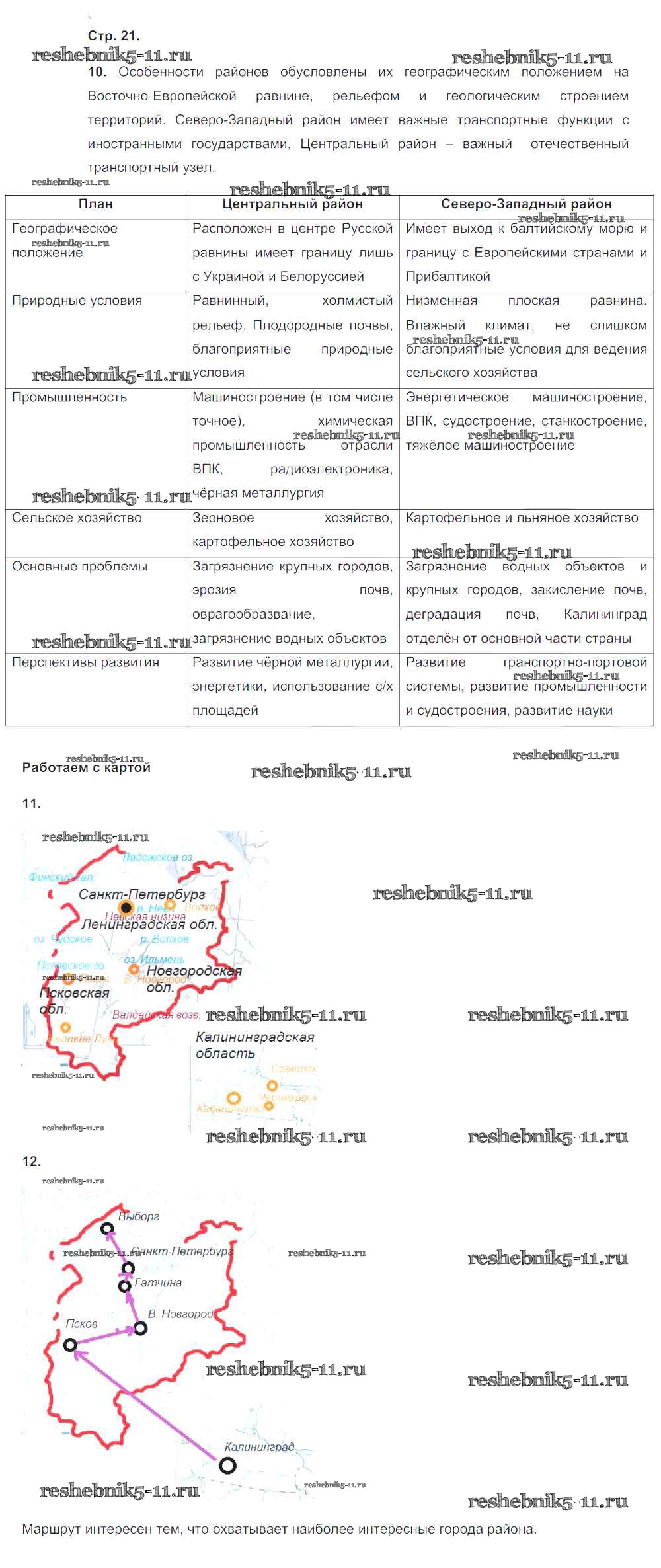 Готовая домашняя работа с ответами по Географии за 9 класс Николина Тетрадь-тренажер Полярная звезда Просвещение 2016 ФГОС - Страницы тетради 21