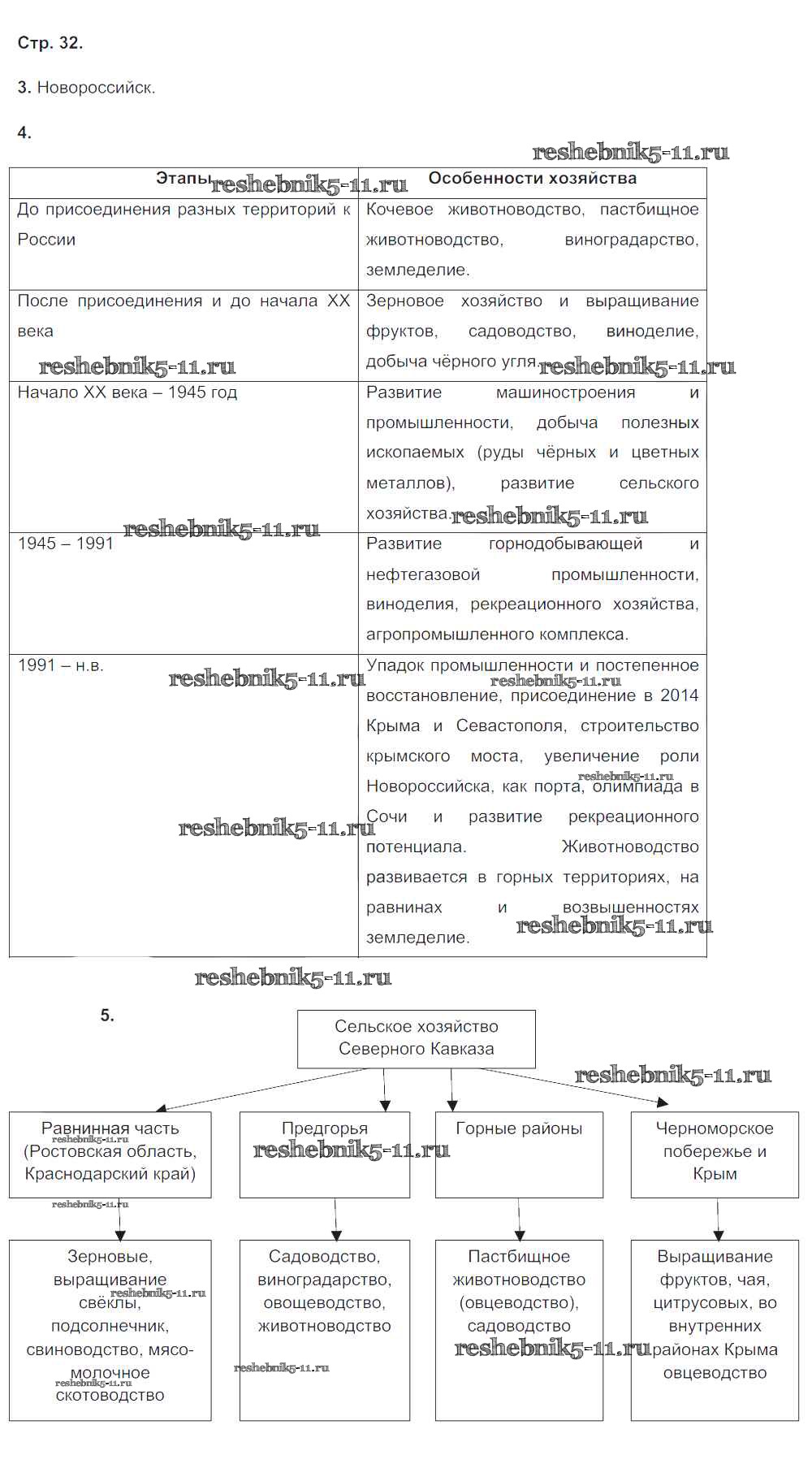 Готовая домашняя работа с ответами по Географии за 9 класс Николина Тетрадь-тренажер Полярная звезда Просвещение 2016 ФГОС - Страницы тетради 32