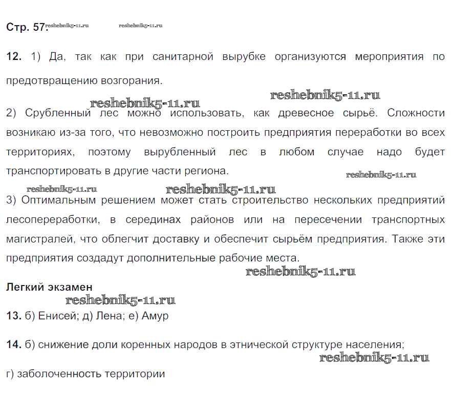 Готовая домашняя работа с ответами по Географии за 9 класс Николина Тетрадь-тренажер Полярная звезда Просвещение 2016 ФГОС - Страницы тетради 57
