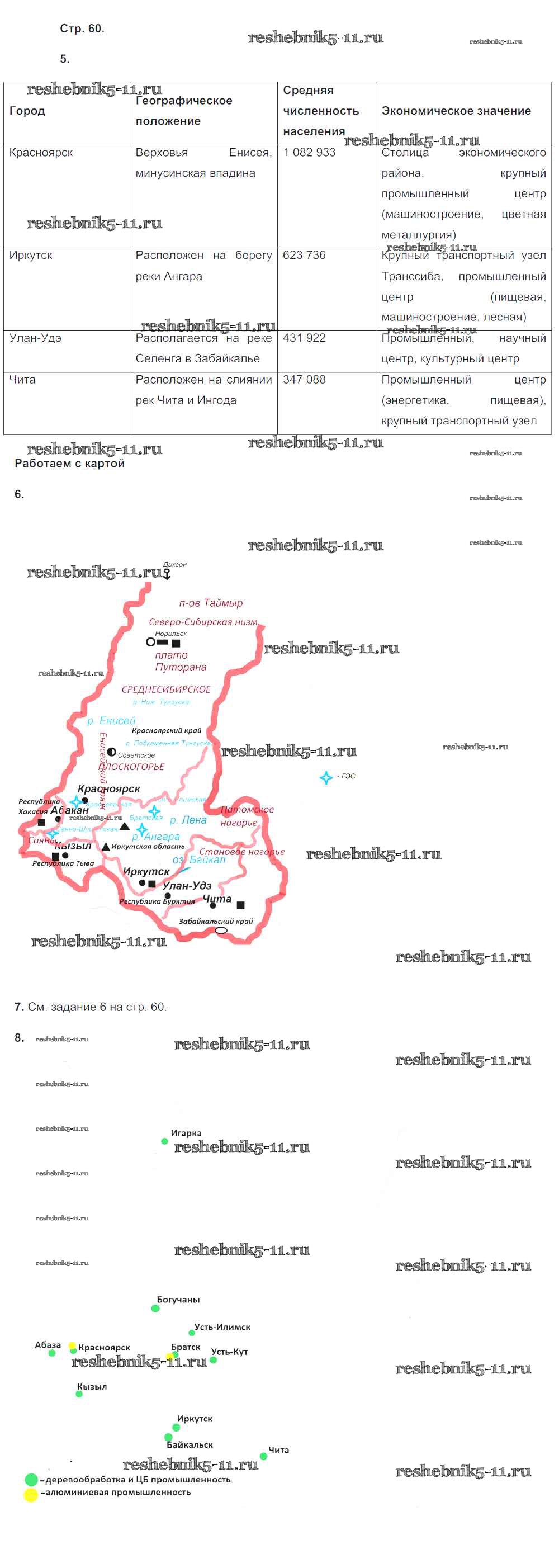 Готовая домашняя работа с ответами по Географии за 9 класс Николина Тетрадь-тренажер Полярная звезда Просвещение 2016 ФГОС - Страницы тетради 60