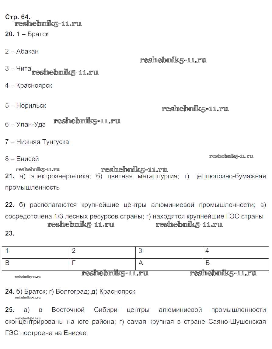 Готовая домашняя работа с ответами по Географии за 9 класс Николина Тетрадь-тренажер Полярная звезда Просвещение 2016 ФГОС - Страницы тетради 64