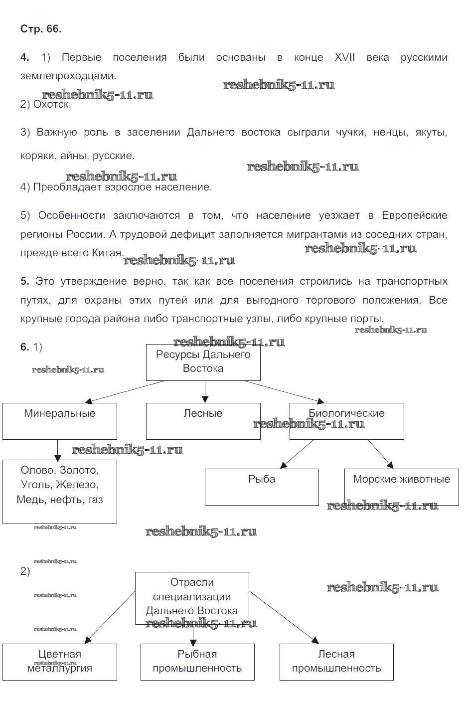 Готовая домашняя работа с ответами по Географии за 9 класс Николина Тетрадь-тренажер Полярная звезда Просвещение 2016 ФГОС - Страницы тетради 66