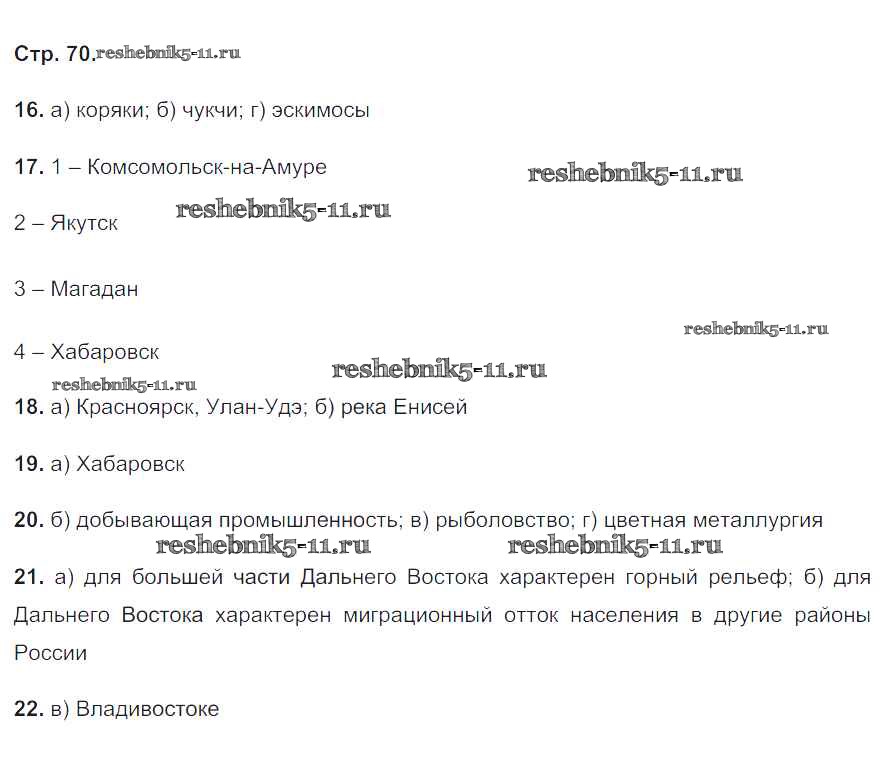 Готовая домашняя работа с ответами по Географии за 9 класс Николина Тетрадь-тренажер Полярная звезда Просвещение 2016 ФГОС - Страницы тетради 70