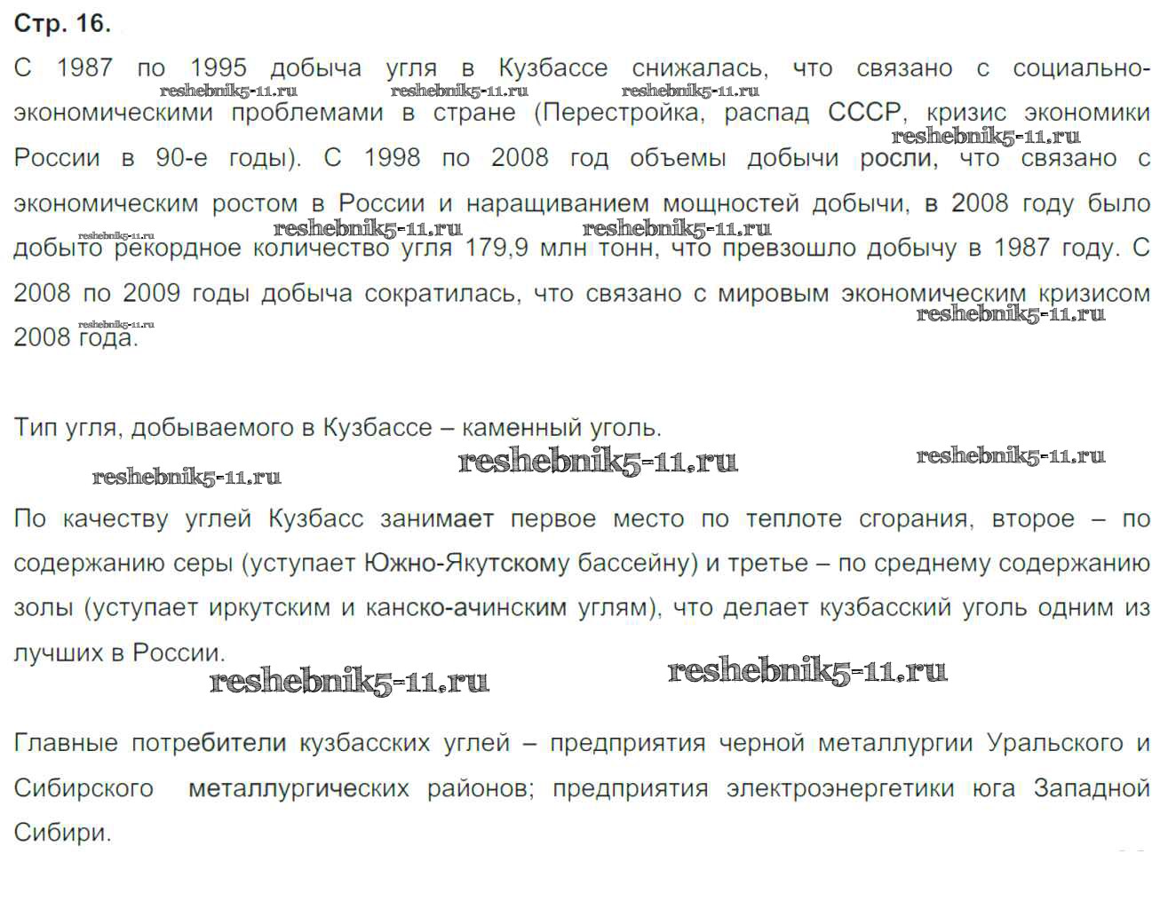 Готовая домашняя работа с ответами по Географии за 9 класс Ольховая, Протасова, Савельева Тетрадь-практикум Сферы Просвещение 2016 ФГОС - Страницы 16