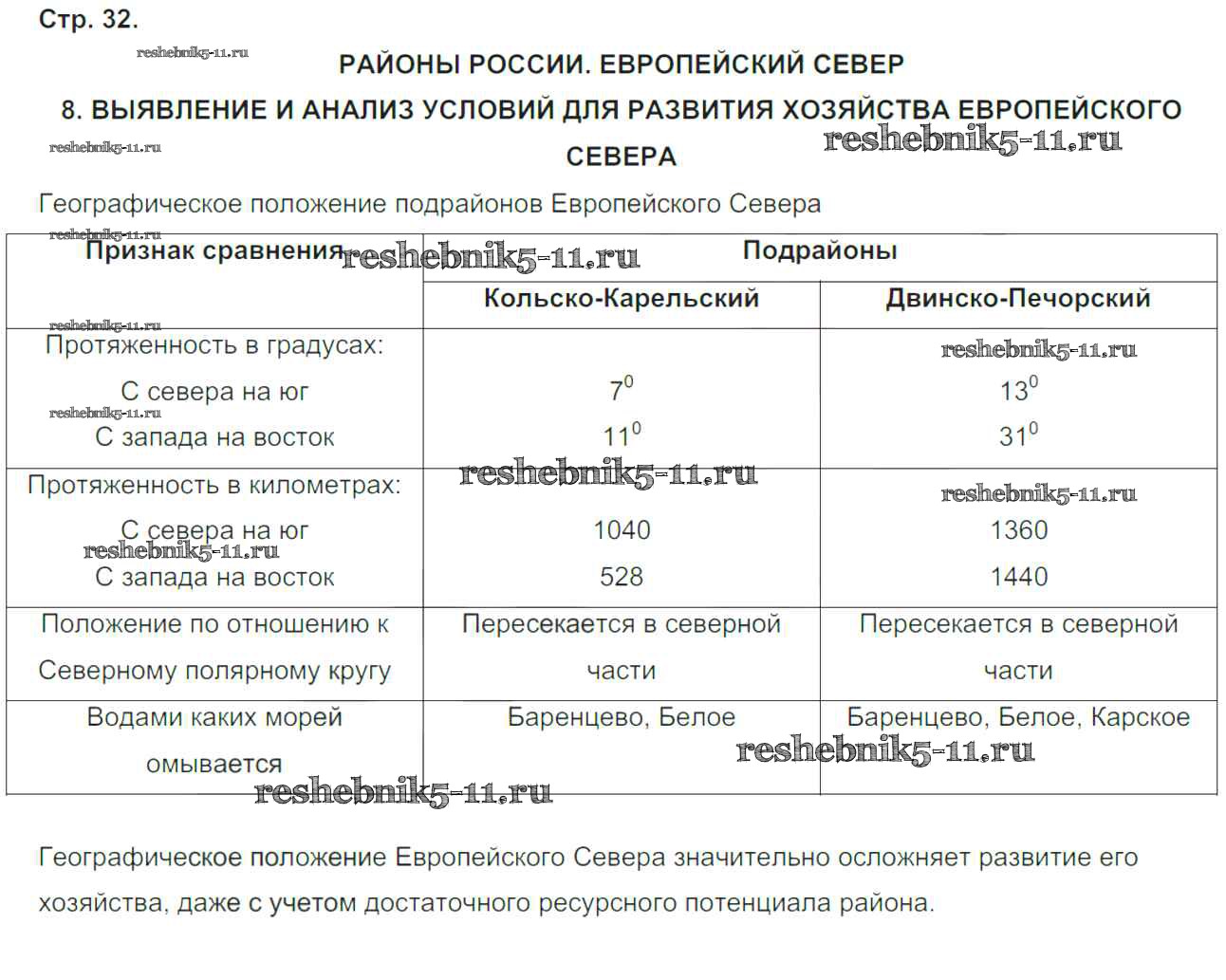 Готовая домашняя работа с ответами по Географии за 9 класс Ольховая, Протасова, Савельева Тетрадь-практикум Сферы Просвещение 2016 ФГОС - Страницы 32