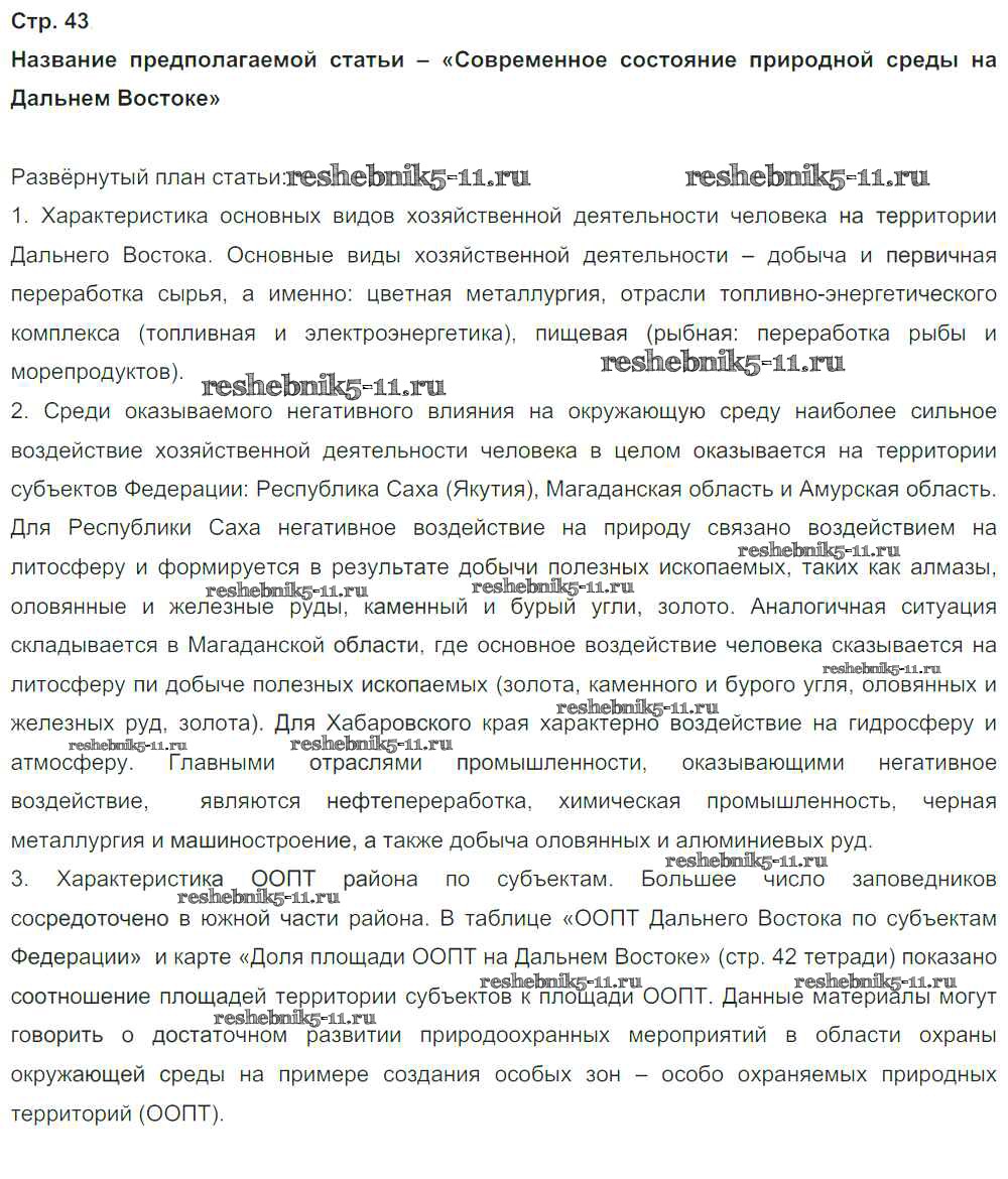 Готовая домашняя работа с ответами по Географии за 9 класс Ольховая, Протасова, Савельева Тетрадь-практикум Сферы Просвещение 2016 ФГОС - Страницы 43