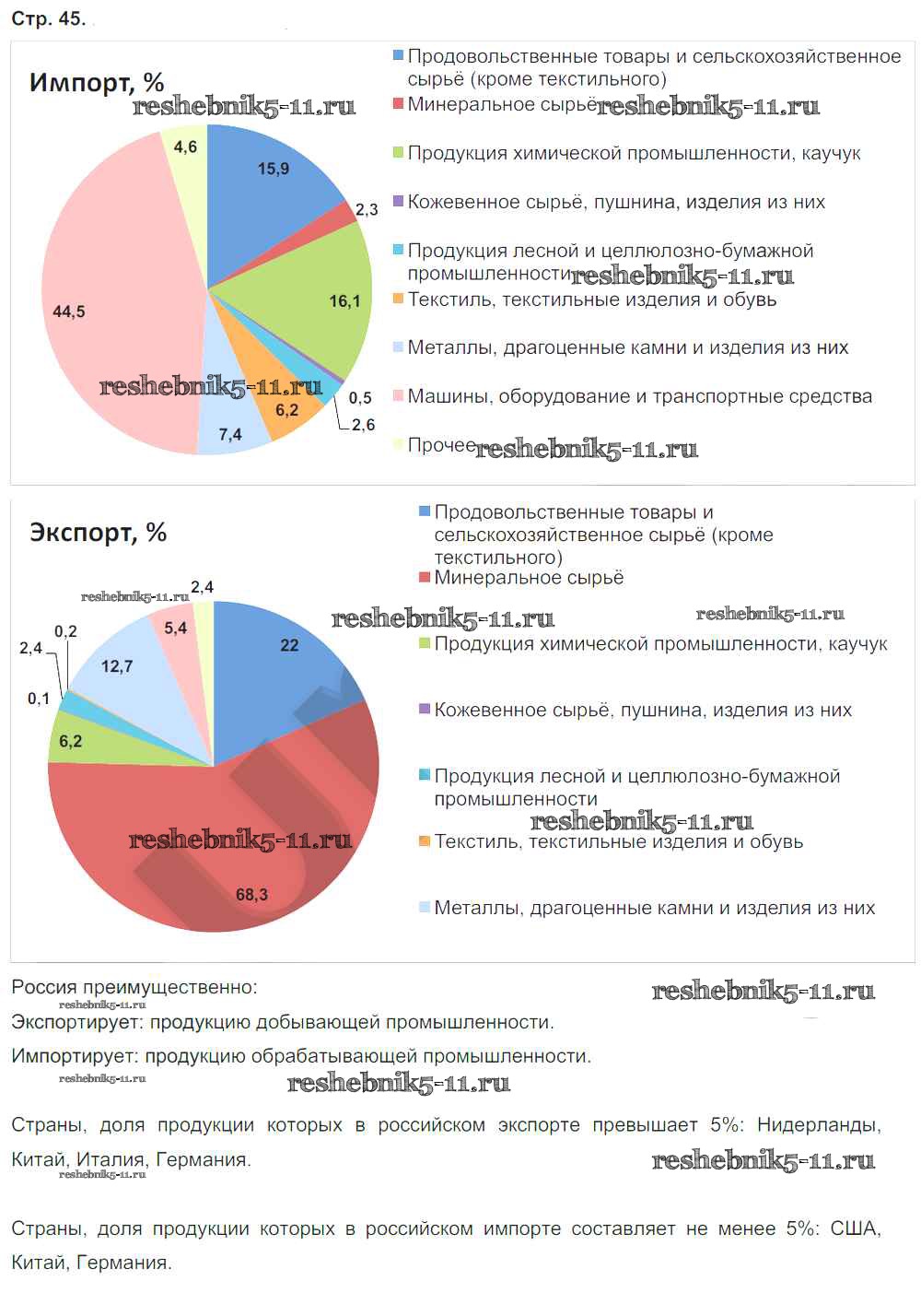 Готовая домашняя работа с ответами по Географии за 9 класс Ольховая, Протасова, Савельева Тетрадь-практикум Сферы Просвещение 2016 ФГОС - Страницы 45