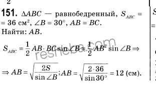 Готовая домашняя работа с ответами по Геометрии за 9 класс Мерзляк, Полонский, Якир Учебник Вентана-граф 2016 ФГОС - Задачи 151