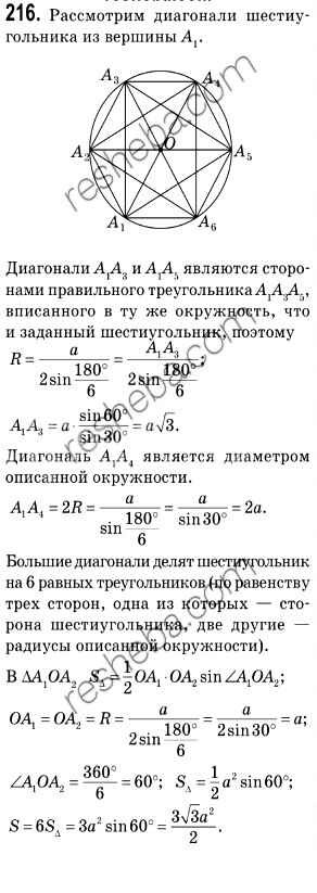 Готовая домашняя работа с ответами по Геометрии за 9 класс Мерзляк, Полонский, Якир Учебник Вентана-граф 2016 ФГОС - Задачи 216