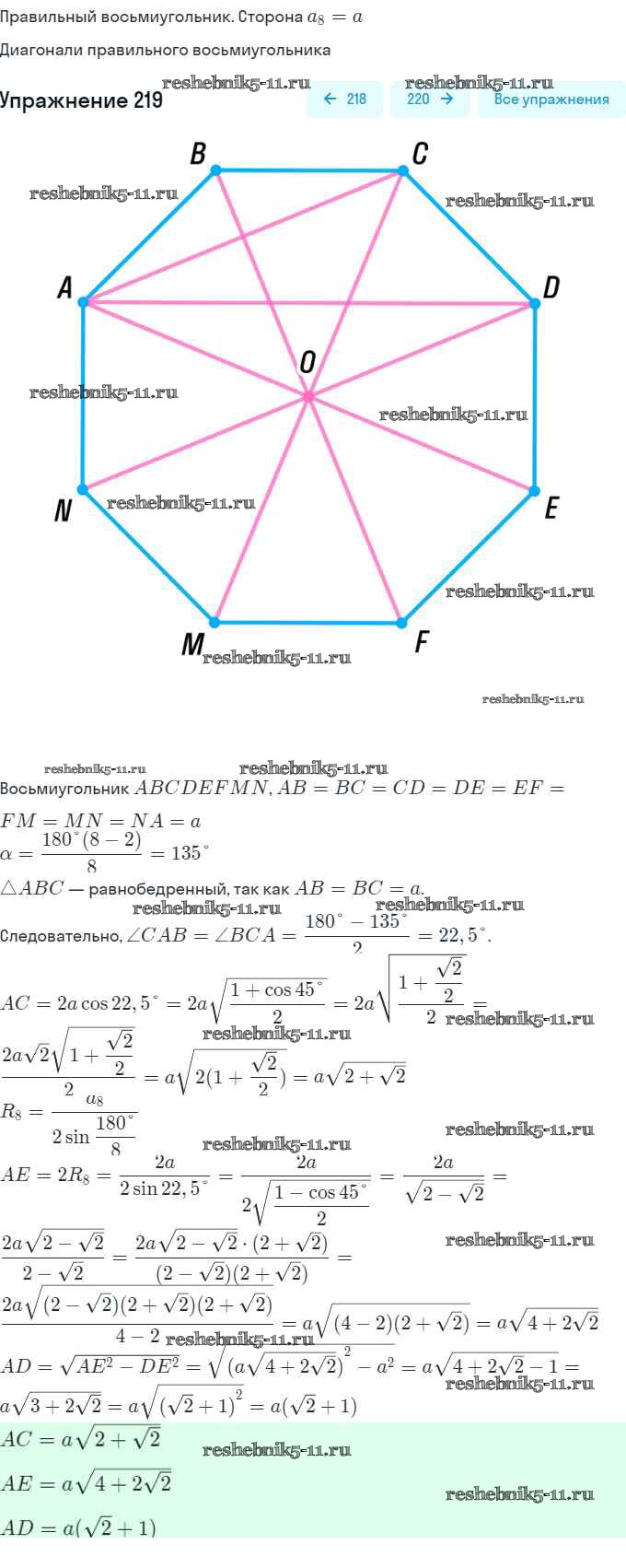 Геометрия за 9 класс Мерзляк Учебник Вентана-граф задача 219