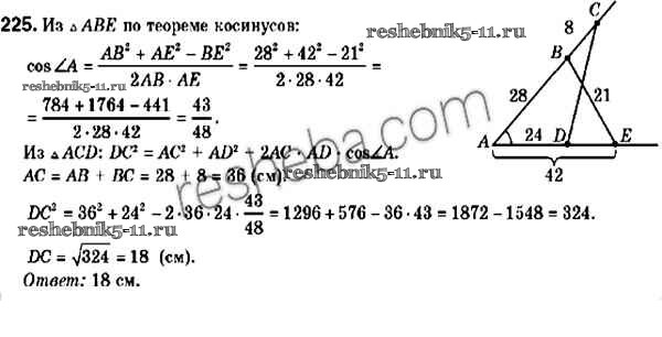 Готовая домашняя работа с ответами по Геометрии за 9 класс Мерзляк, Полонский, Якир Учебник Вентана-граф 2016 ФГОС - Задачи 225