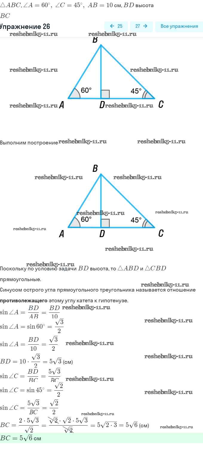 Готовая домашняя работа с ответами по Геометрии за 9 класс Мерзляк, Полонский, Якир Учебник Вентана-граф 2016 ФГОС - Задачи 26